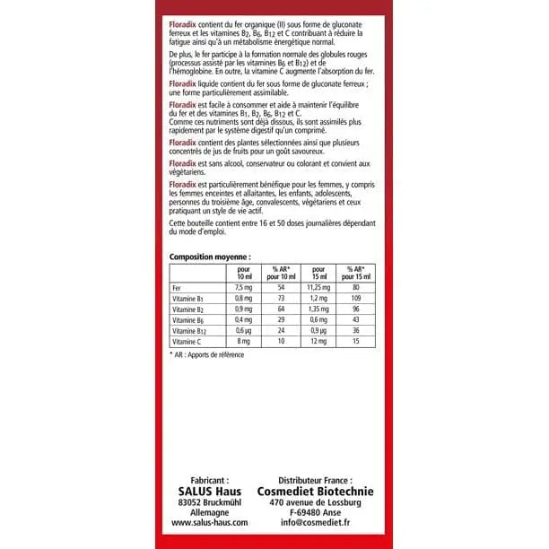 Boost your vitality with Floradix Liquid Iron Supplement. This carefully crafted formula helps replenish your iron levels using natural plant extracts and fruit juice concentrates. It promotes overall well-being without artificial additives.