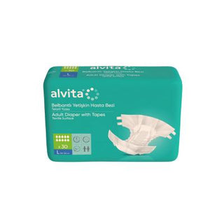 Discover comfort and reliability with Alvita Adult Diapers, specifically designed for elderly individuals and their caregivers. This pack of 30 large-size diapers features textile surfaces with convenient belt fastening, making them ideal for added security and ease of use.