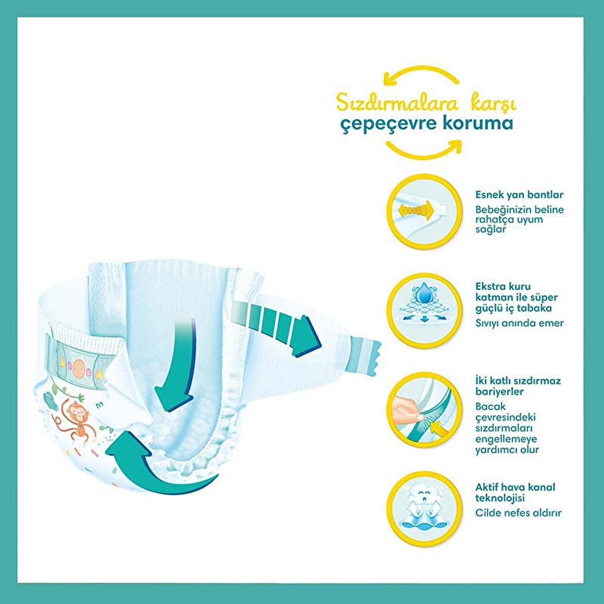 Unlike conventional diapers, these exceptional diapers feature a unique triple protection system that instantly absorbs moisture and provides a snug fit around the belly and legs, effectively reducing leaks day and night. Here’s how they keep your baby secure: