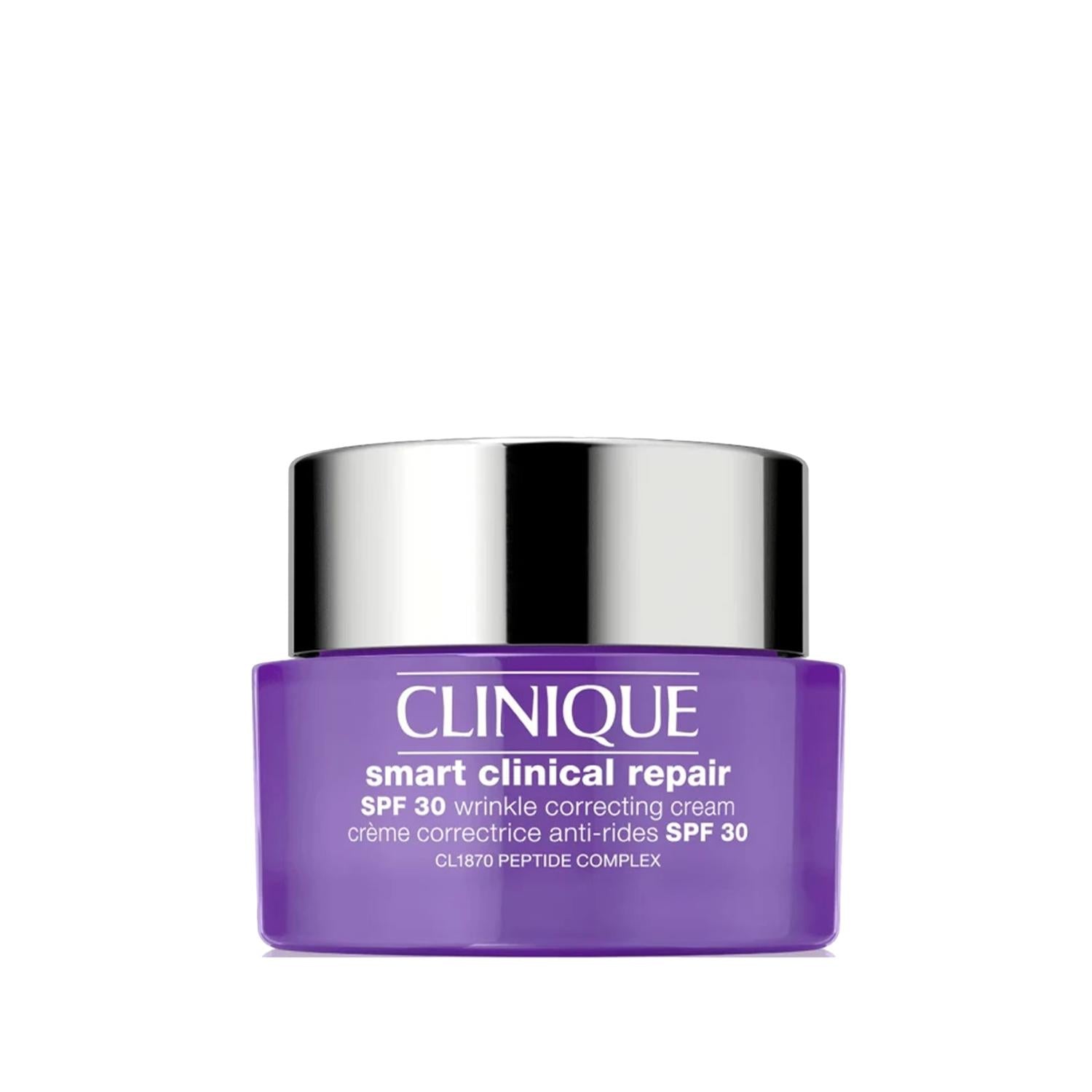 Unlock the secret to youthful, radiant skin with Clinique Smart Clinical Repair Anti-Aging Moisturizer, expertly formulated to reduce the appearance of fine lines and wrinkles while providing essential hydration and sun protection. This premium moisturizer is perfect for individuals concerned about aging skin, those seeking moisturizers with SPF protection, and people looking for anti-wrinkle skincare products.