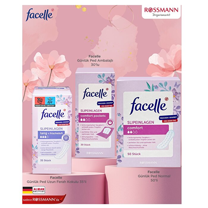 It is a daily pad with a breathable texture that leaves the effect of clean underwear all day long. It is skin-friendly with its micro perforated surface. It leaves a well-groomed and clean feeling. Thanks to its strong suction performance, it traps odor. 50 pieces.