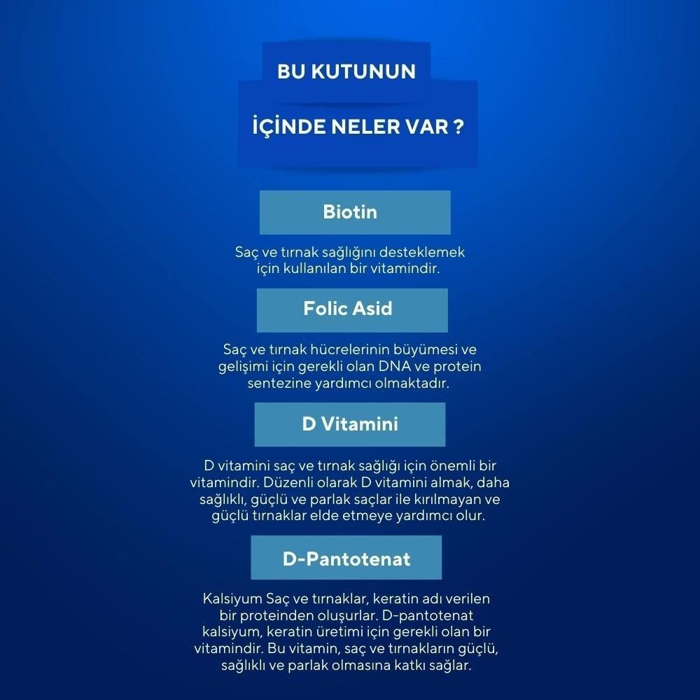 - Supports Hair and Nail Health: Biotin, Vitamin D, and Zinc work together to strengthen your hair and nails, reducing brittleness and breakage.