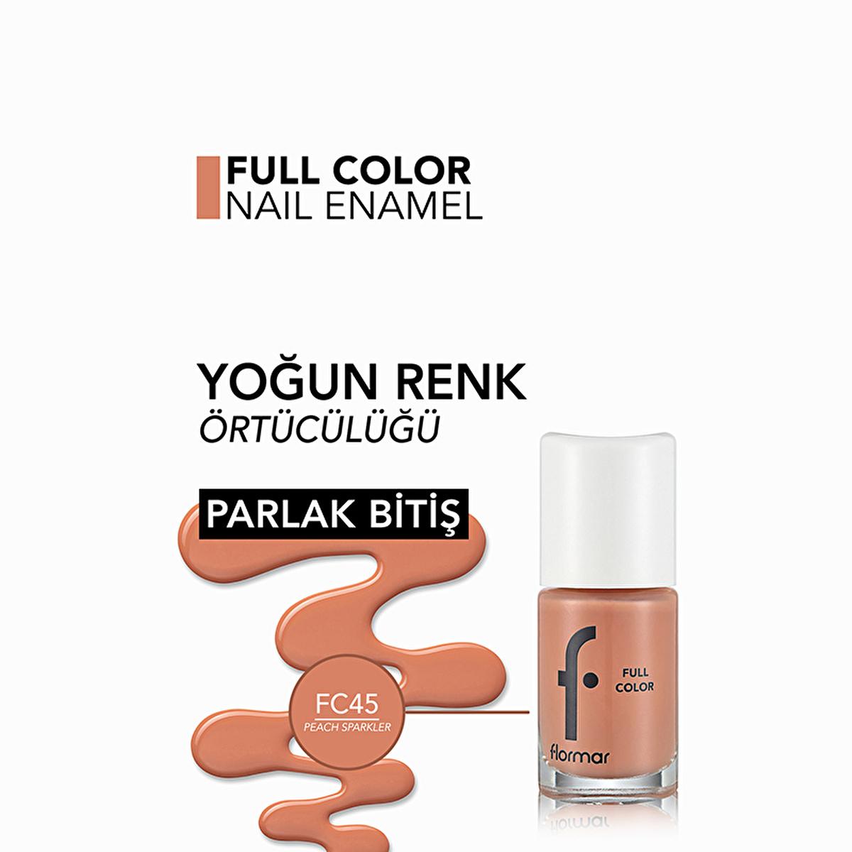 Flormar Full Color Nail Polish - High Pigment, Long Lasting, Glossy Finish - FC45 Peach Sparkler