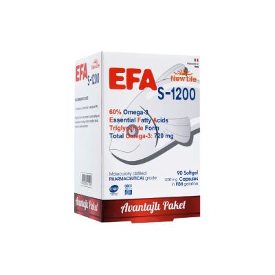 Boost your health with New Life Efa S-1200 Omega-3 capsules, a premium supplement designed for health-conscious individuals and those seeking to enhance their diet with omega-3 fatty acids.