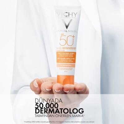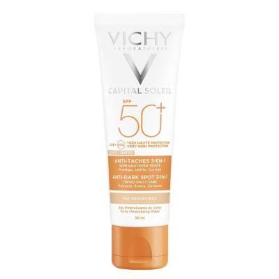 Are you worried about sun damage, dark spots, and uneven skin tone? Do you dream of a flawless complexion while staying protected from harmful UV rays? The Vichy Capital Soleil SPF 50+ Anti-Dark Spots Tinted Sunscreen is your daily defense against sun-induced skin damage and the secret to a radiant, even-toned complexion. This hypoallergenic sunscreen combines high SPF 50+ protection with powerful anti-dark spot properties, working to prevent new spots and visibly reduce existing ones.