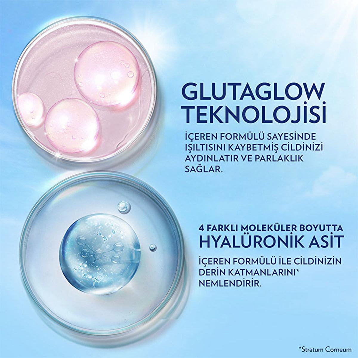 - Key Ingredients: GlutaGlow Technology, Hyaluronic Acid (four molecular weights)