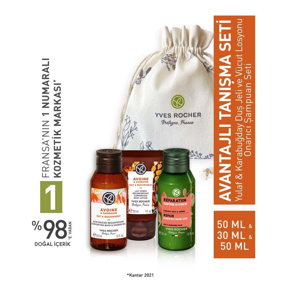 Yves Rocher Travel Size Personal Care Set - Oat & Buckwheat Skincare, Prebiotic Shampoo for Damaged Hair