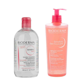 Bioderma Sensibio H2O 500ml + Sensibio Foaming Gel 500ml SetBioderma Sensibio Skin Cleansing SetBioderma Sensibio H2O 500ml No-Rinse Cleanser for Sensitive SkinIt performs daily cleansing of sensitive skin and helps remove make-up. The micelles it contains help maintain skin balance while microemulsifying dirt. Thanks to its soothing active agents, it aims to be effective in preventing irritation that may occur after skin cleansing. It has high eye area and skin tolerance. How to Use: Cleanse the skin and/or remove make-up with the help of a cotton ball. Afterwards, the skin is gently dried. Product Content: aqua/water/eau, peg-6 caprylic/capric glycerides, fructooligosaccharides, mannitol, xylitol, rhamnose, cucumis sativus (cucumber) fruit extract, propylene glycol, cetrimonium bromide, disodium edtaBioderma Sensibio Foaming Gel 500ml Sensitive and Humidity Rinsing Micellar Cleansing Gel for Skin Experiencing Loss: It helps to gently cleanse the skin, remove make-up and moisturize it. It helps soothe skin sensitivity and discomfort. It does not contain soap or perfume. How to use: Apply to damp skin that has been slightly wetted with water. When applying to the face, it is foamed and then washed with plenty of water. It is lightly dried. Suitable for morning and/or evening use. Product Content: aqua/water/eau, sodium cocoamphoacetate, propanediol, sodium lauroyl sarcosinate, citric acid, coco-glucoside, glyceryl oleate, sodium citrate, peg-90 glyceryl isostearate, mannitol, xylitol, laureth. -2, rhamnose, fructooligosaccharides, tocopherol, hydrogenated palm glycerides citrate, lecithin, ascorbyl palmitate.