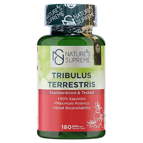 What is Tribulus Terrestris? Tribulus Terrestris, known as "Iron Thorn" in Turkish, is a plant widely used in traditional medicine in China and India. Nature's Supreme Tribulus Terrestris is a standardized Tribulus supplement with a 90% high saponin content. Each herbal capsule provides 500 mg of Tribulus Terrestris and 450 mg of saponin. The beneficial properties of Tribulus Terrestris are provided by its high content of steroidal saponins. It also contains glycosides, alkaloids, resins, tannins, nitrogen, peroxidase, diastase, flavonoids, carbohydrates, protein, fructose, and sucrose. Its protein percentage is approximately 10-11% and it contains 14 amino acids, 6 of which are essential. Notable Features of Nature's Supreme Tribulus Terrestris: - Standardized Tribulus Terrestris extract - 90% saponin content - 100% herbal supplement suitable for vegan and vegetarian use - Herbal DRcaps capsules dissolve directly in the intestines - Produced in ISO 9001, 22000, GMP, and halal certified facilities Nature's Supreme Tribulus Terrestris, thanks to its raw materials obtained from Masso, a company with a patented production technique, and its vegetarian-friendly herbal capsules, dissolves directly in the intestines, ensuring high absorption. Nature's Supreme Tribulus Terrestris uses standardized plant extracts. The term "standardized plant extract" indicates that the product's pharmacological efficacy has been tested and proven and that it has a constant active ingredient ratio. Conversely, when the herbal extract is not standardized, the active ingredient ratio in each capsule may vary, and therefore, the effectiveness of the capsules may vary. All capsules in Nature's Supreme Tribulus Terrestris are standardized. This ensures the same amount of saponin is delivered in each capsule. The quality label on the product indicates that the product has undergone microbiological testing and analysis, and that the claimed content has been verified. Nature's Supreme independently analyzes the accuracy and quality of the declared ingredients in all its products at Türkiye's and Europe's most advanced microbiological analysis laboratory, which holds a TÜRKAK Accreditation Certificate. For detailed information, please visit the Tribulus Terrestris product page on the Nature's Supreme website. Ideal Storage Recommendation: Do not remove the desiccant. Keep away from potentially humid environments such as the kitchen, bathroom, and refrigerator, and tightly close the lid. Store in a cool, dry place. Quality Approval Report: 180 Capsules Serving Size: 1 Capsule Number of Servings: 180 % Daily Value (DV) per Serving* 500mg ** supplementler.com Tribulus Terrestris (Tiger Thorn Extract) 450mg ** supplementler.com Saponin * Values are calculated based on 2000 kcal/day and may vary depending on gender, age, and physical activity. ** Daily values have not been determined. Beginner: Adults are recommended to consume 1 capsule per day. Intermediate: Adults are recommended to consume 1 capsule per day. Advanced: Adults are recommended to consume 1 capsule per day.