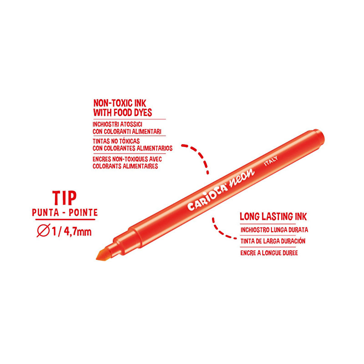 Unleash your creativity with the Carioca Neon Washable Markers, specially designed for vibrant coloring and highlighting. This 8-piece set is perfect for artists of all ages looking to add a pop of color to their projects.