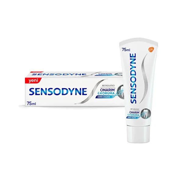Sensodyne's unique Repair & Protect Whitening formula is engineered to not only help repair and protect sensitive teeth but also to gently whiten them, leaving you with a brighter, healthier-looking smile. The desensitizing properties work to alleviate tooth sensitivity, making it more comfortable to enjoy your favorite foods and drinks without the nagging pain.