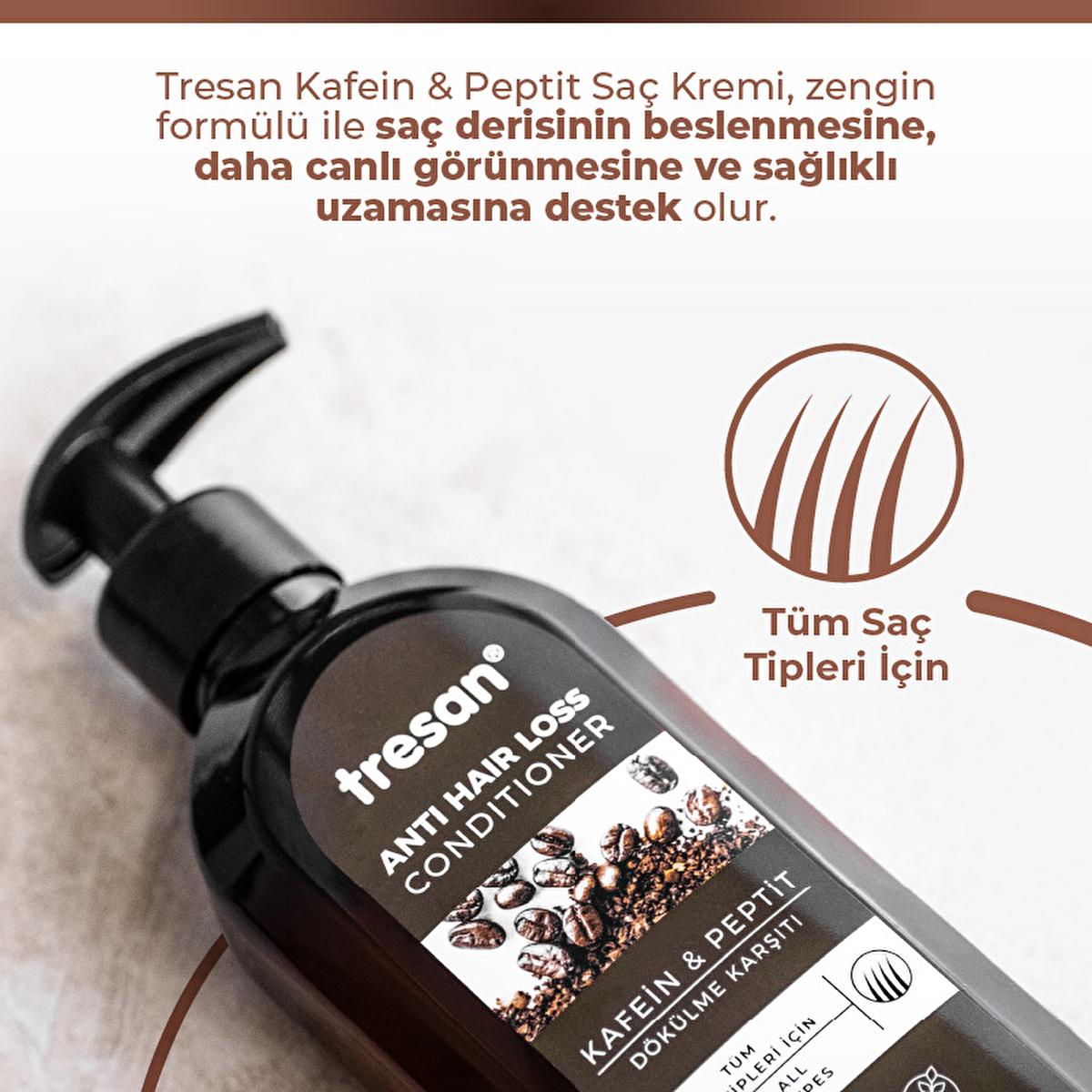 Are you struggling with hair loss or thinning? Do you dream of having luscious, healthy, and vibrant locks? Introducing the Tresan Kafein & Peptit Dökülme Karşıtı Saç Bakım Kremi, a revolutionary hair care cream designed to nourish, strengthen, and promote hair growth. With its unique Caffeine & Peptide formula, this cream supports hair growth, reduces hair loss, and nourishes the scalp for healthier hair.