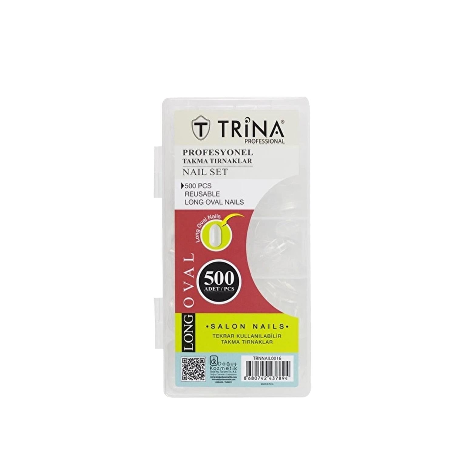 Transform your nail beauty routine with Trina's Long Oval Takma Tırnaklar 500 Adet False Nails. These artificial nail tips are designed to provide a flawless, long-lasting nail enhancement solution for individuals seeking to elevate their beauty regimen. With 500 pieces in a pack, you have an ample supply to achieve salon-quality results at home or in the salon.